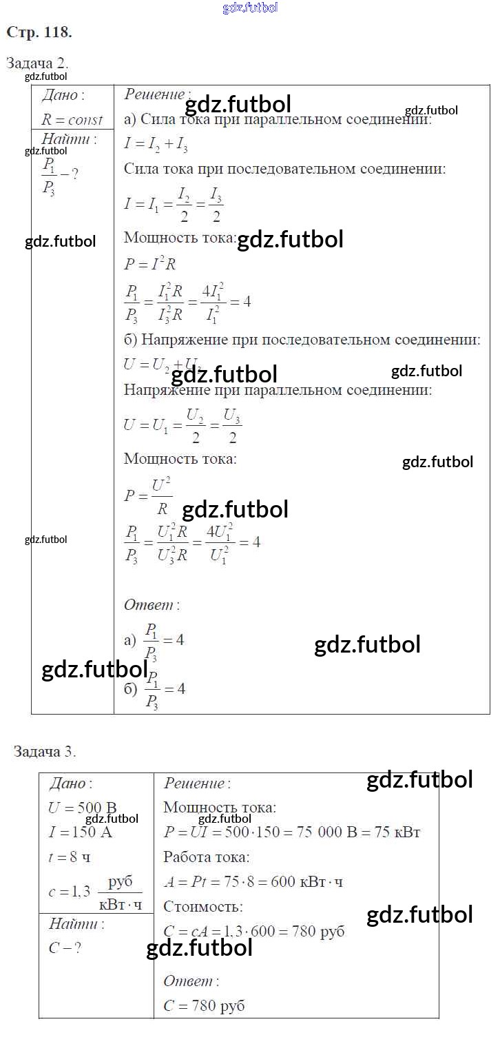 Готовые домашние задания по Физике за 8 класс Перышкин Рабочая тетрадь УМК 2017 ФГОС - Страницы 118