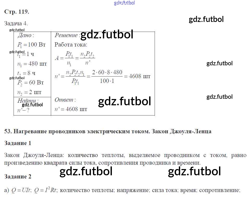 Готовые домашние задания по Физике за 8 класс Перышкин Рабочая тетрадь УМК 2017 ФГОС - Страницы 119