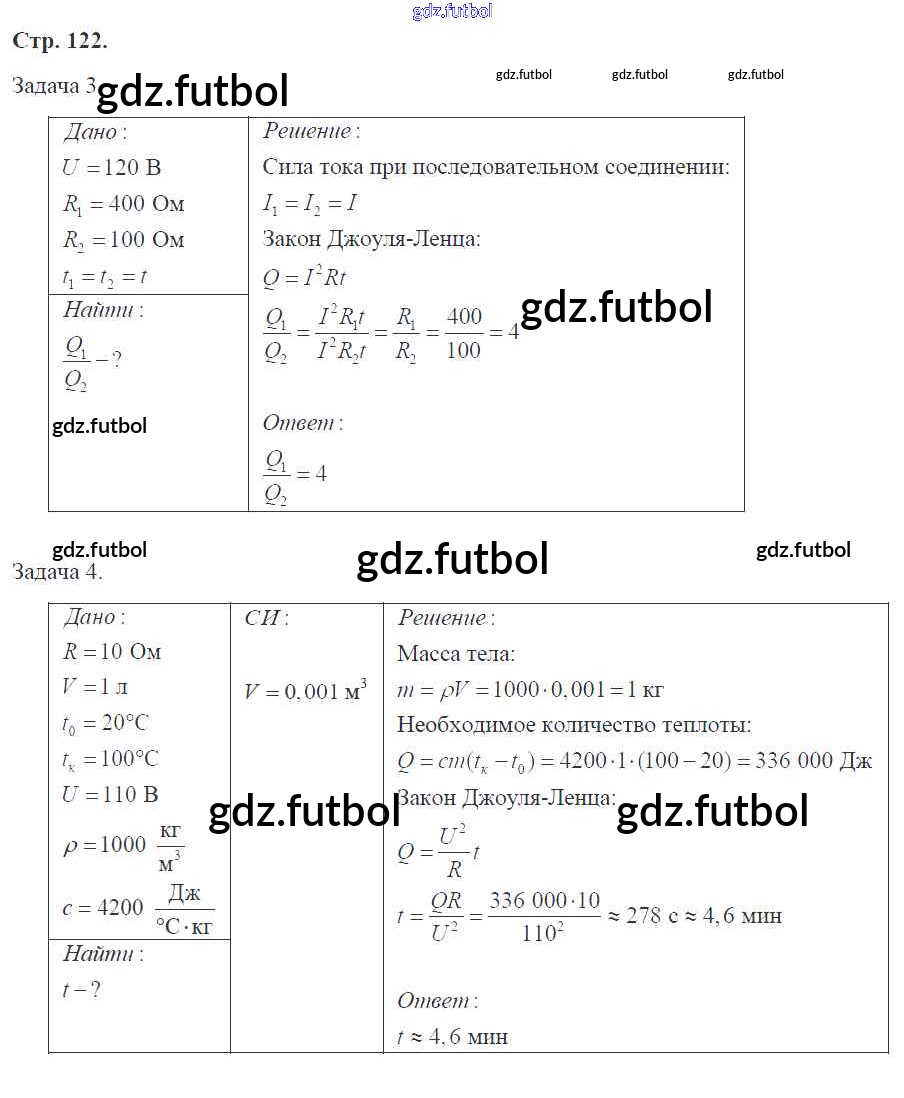 Готовые домашние задания по Физике за 8 класс Перышкин Рабочая тетрадь УМК 2017 ФГОС - Страницы 122