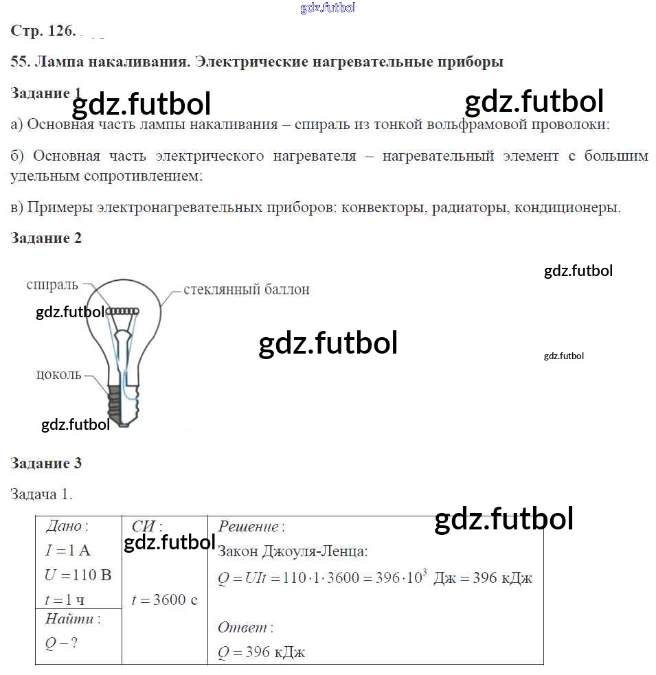 Готовые домашние задания по Физике за 8 класс Перышкин Рабочая тетрадь УМК 2017 ФГОС - Страницы 126