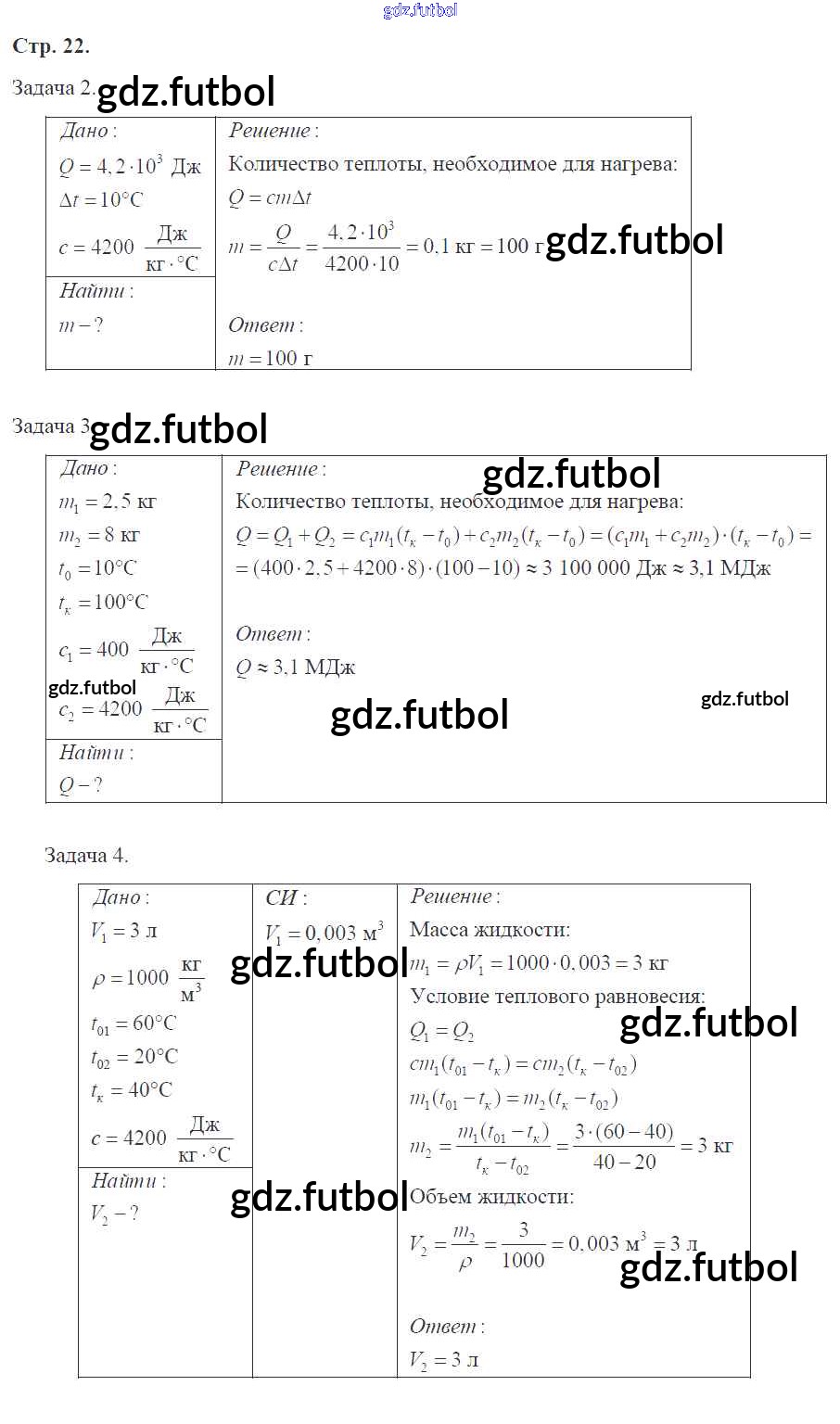 Готовые домашние задания по Физике за 8 класс Перышкин Рабочая тетрадь УМК 2017 ФГОС - Страницы 22