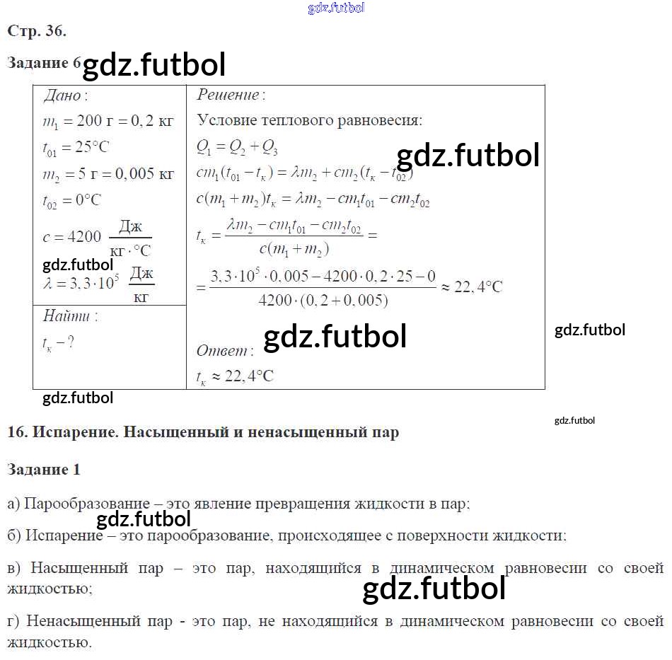 Готовые домашние задания по Физике за 8 класс Перышкин Рабочая тетрадь УМК 2017 ФГОС - Страницы 36