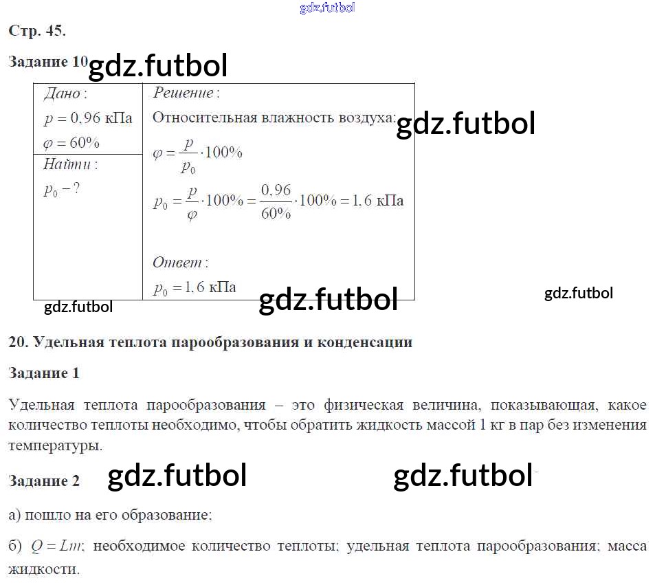 Готовые домашние задания по Физике за 8 класс Перышкин Рабочая тетрадь УМК 2017 ФГОС - Страницы 45