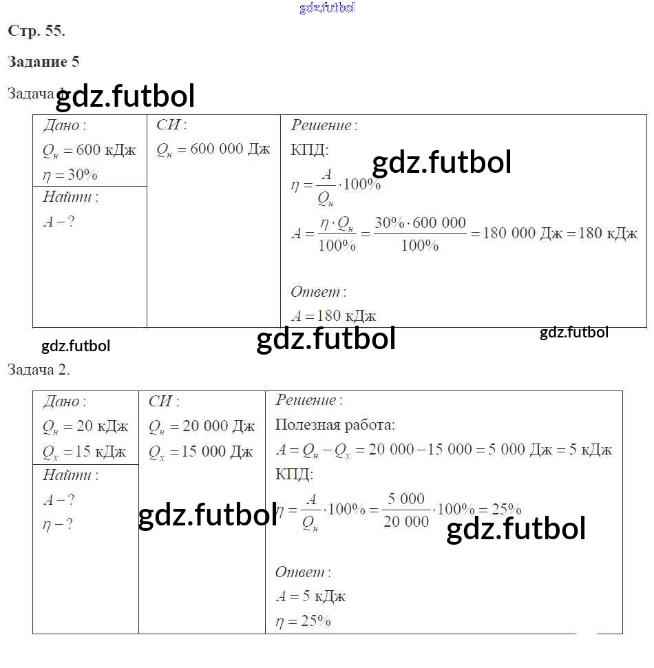 Готовые домашние задания по Физике за 8 класс Перышкин Рабочая тетрадь УМК 2017 ФГОС - Страницы 55