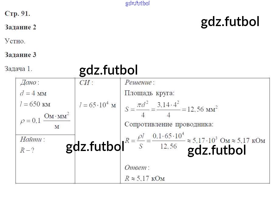 Готовые домашние задания по Физике за 8 класс Перышкин Рабочая тетрадь УМК 2017 ФГОС - Страницы 91