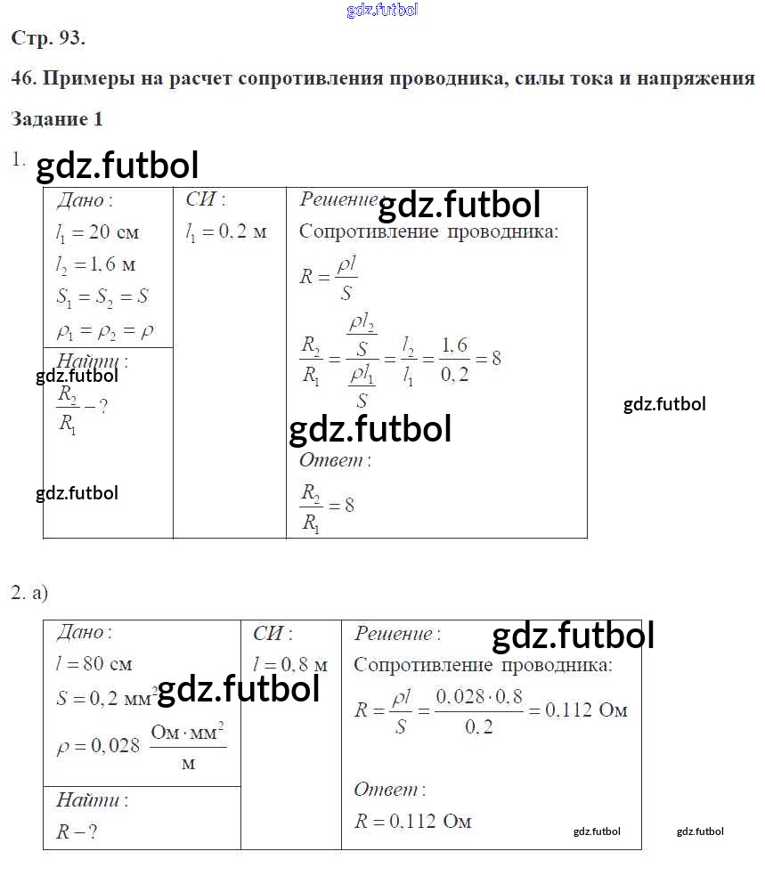 Готовые домашние задания по Физике за 8 класс Перышкин Рабочая тетрадь УМК 2017 ФГОС - Страницы 93