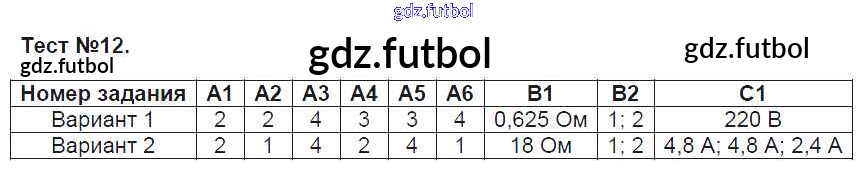 Готовые домашние задания по Физике за 8 класс Зорин Контрольно-измерительные материалы (КИМ) 2017 ФГОС - Тесты 12