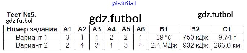Готовые домашние задания по Физике за 8 класс Зорин Контрольно-измерительные материалы (КИМ) 2017 ФГОС - Тесты 5
