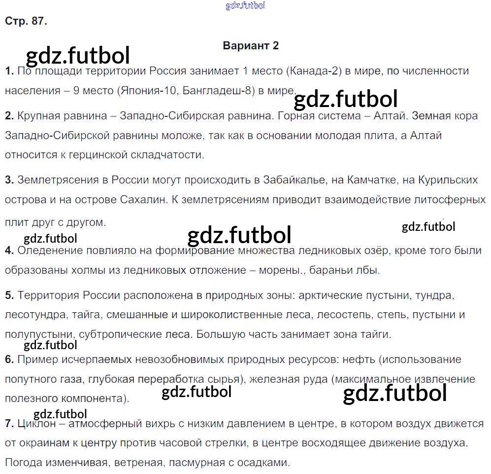 Готовые решения задач (ГДЗ) по Географии восьмой класс Барабанов Тетрадь-экзаменатор Сферы 2016 ФГОС - Страницы 87 доступны для различных учебных материалов. У нас вы сможете найти авторские решения для всех пособий, предназначенных для школьников. Не секрет, что в настоящее время многие школьники прибегают к использованию готовых решебников, ведь они содержат подробные ответы для каждого упражнения, представленного в учебнике.