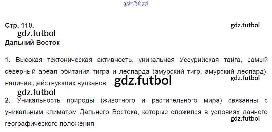 Готовые домашние задания по Географии за 8 класс Баринова Рабочая тетрадь УМК 2018 ФГОС - Страницы 110