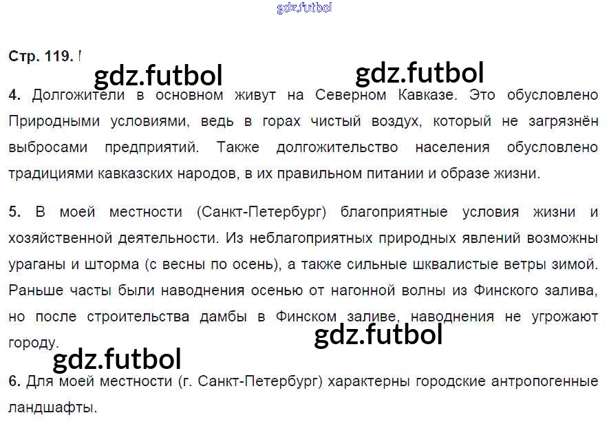 Готовые домашние задания по Географии за 8 класс Баринова Рабочая тетрадь УМК 2018 ФГОС - Страницы 119