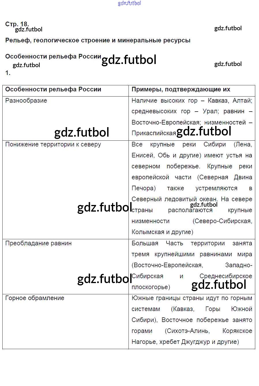 Готовые домашние задания по Географии за 8 класс Баринова Рабочая тетрадь УМК 2018 ФГОС - Страницы 18