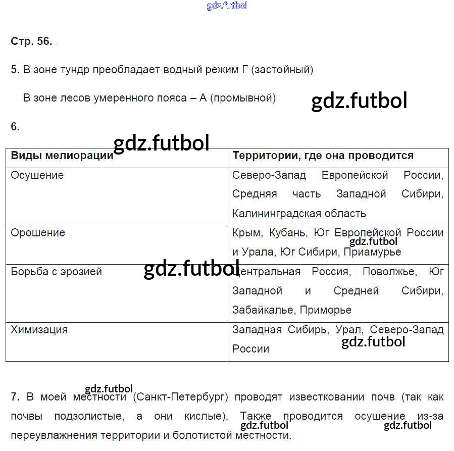 Готовые домашние задания по Географии за 8 класс Баринова Рабочая тетрадь УМК 2018 ФГОС - Страницы 56