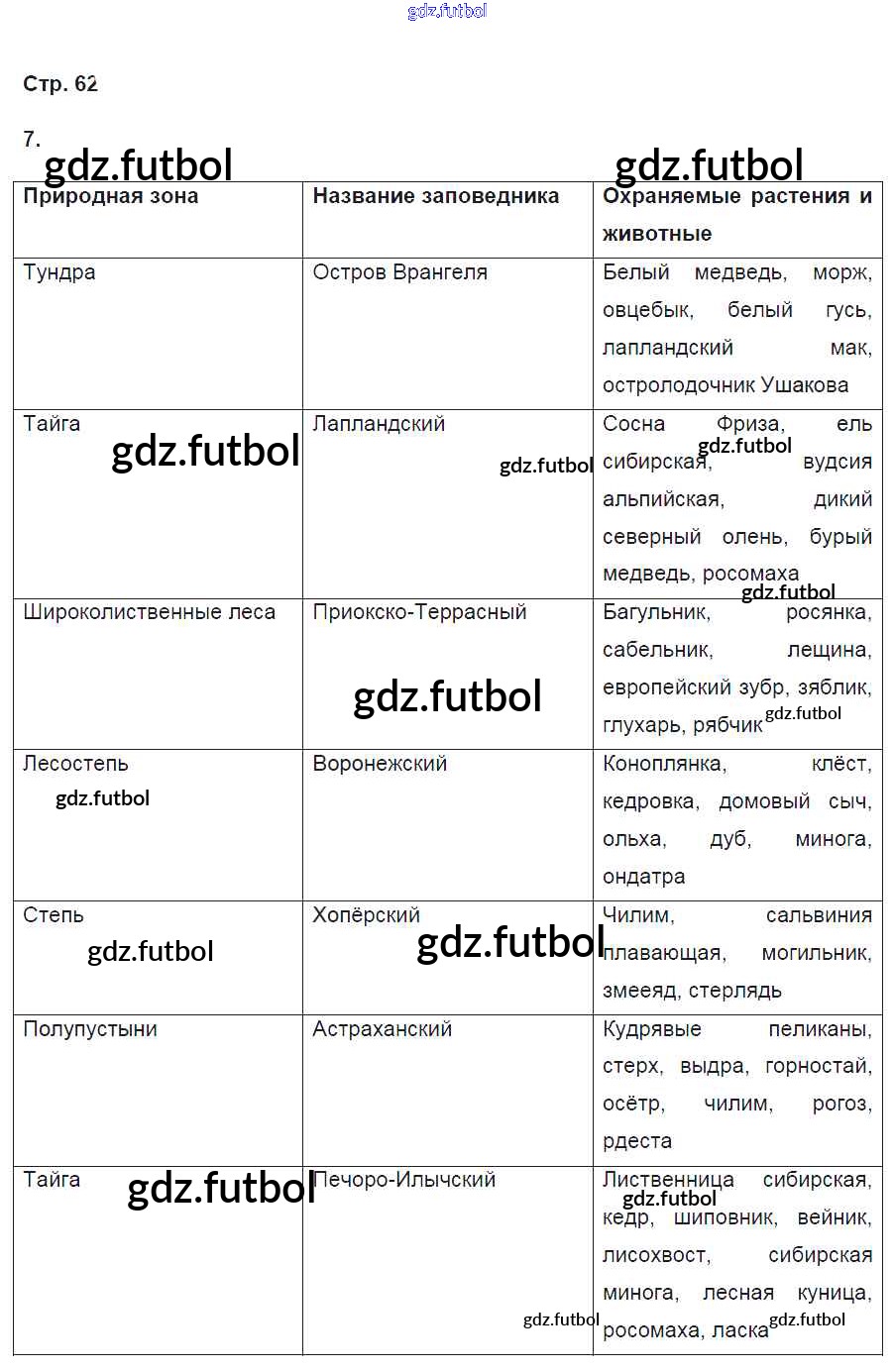 Готовые домашние задания по Географии за 8 класс Баринова Рабочая тетрадь УМК 2018 ФГОС - Страницы 62