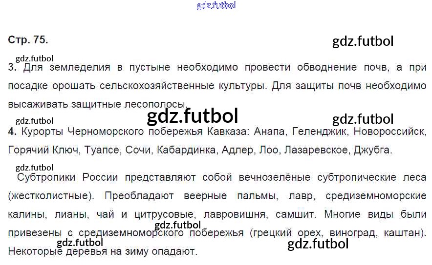 Готовые домашние задания по Географии за 8 класс Баринова Рабочая тетрадь УМК 2018 ФГОС - Страницы 75