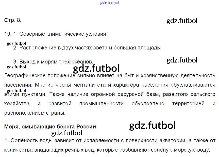 Готовые домашние задания по Географии за 8 класс Баринова Рабочая тетрадь УМК 2018 ФГОС - Страницы 8