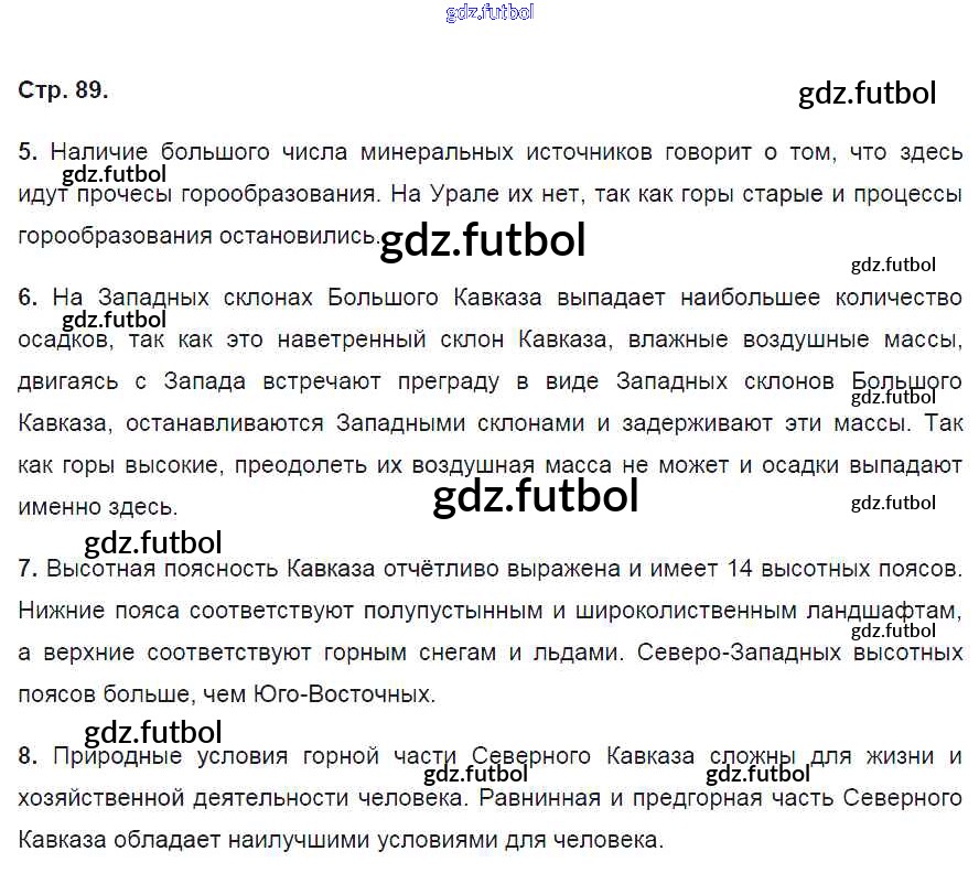 Готовые домашние задания по Географии за 8 класс Баринова Рабочая тетрадь УМК 2018 ФГОС - Страницы 89