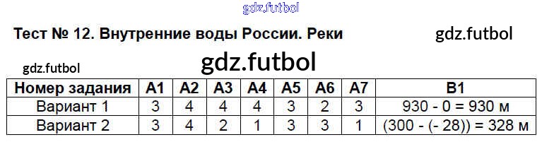 Готовые домашние задания по Географии за 8 класс Жижина Контрольно-измерительные материалы (КИМ) 2018 ФГОС - Тесты 12