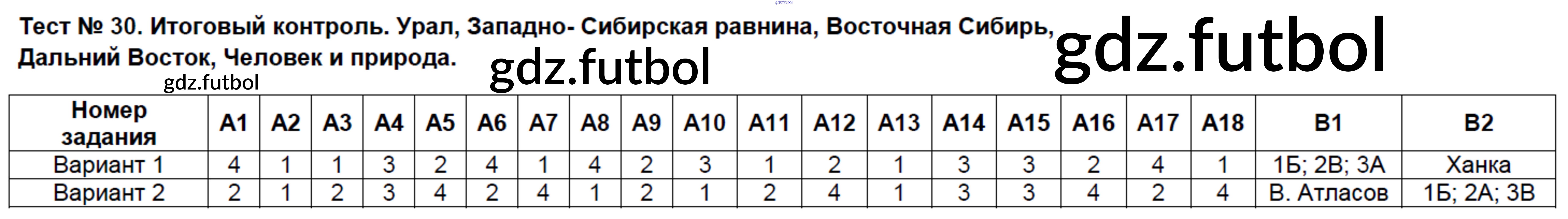 Готовые домашние задания по Географии за 8 класс Жижина Контрольно-измерительные материалы (КИМ) 2018 ФГОС - Тесты 30