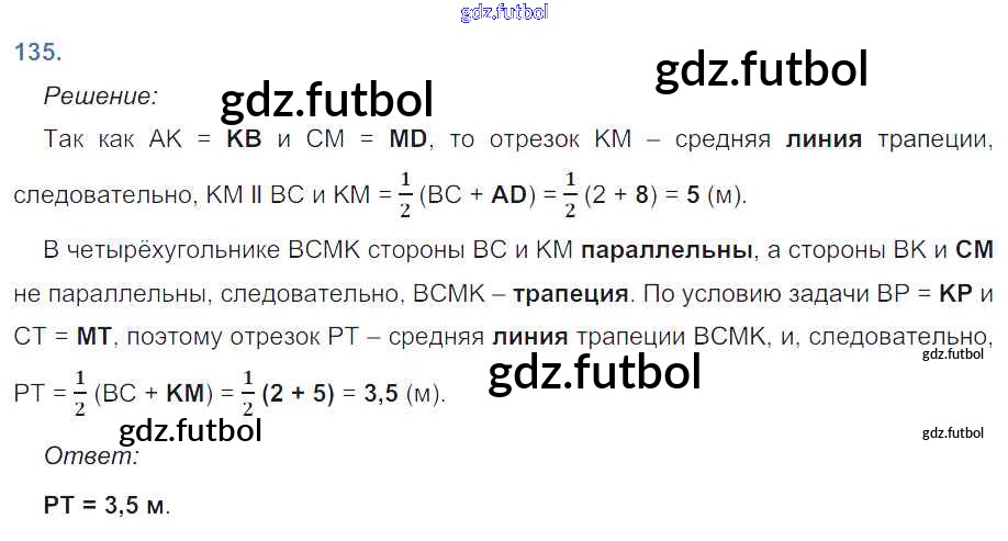 Готовые домашние задания по Геометрии за 8 класс Атанасян Рабочая тетрадь 2019 ФГОС - Задачи 135