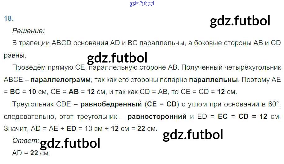 Готовые домашние задания по Геометрии за 8 класс Атанасян Рабочая тетрадь 2019 ФГОС - Задачи 18