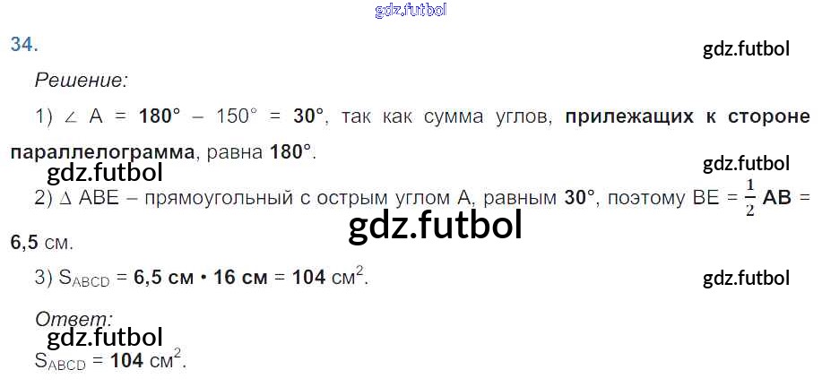Готовые домашние задания по Геометрии за 8 класс Атанасян Рабочая тетрадь 2019 ФГОС - Задачи 34