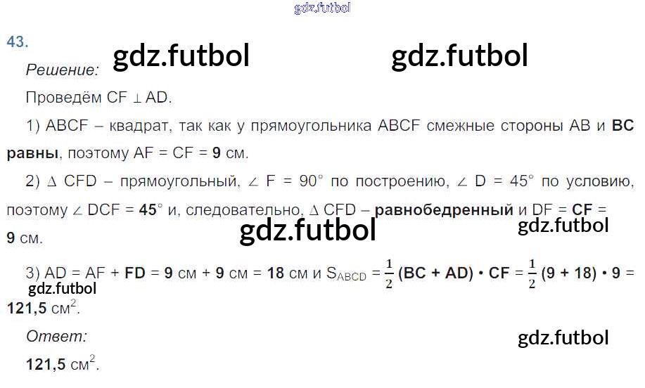 Готовые домашние задания по Геометрии за 8 класс Атанасян Рабочая тетрадь 2019 ФГОС - Задачи 43
