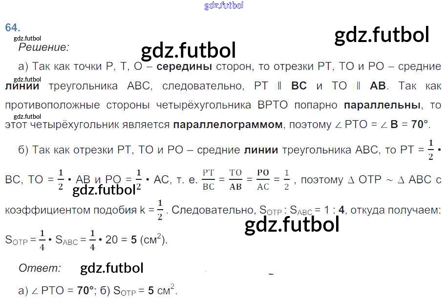 Готовые домашние задания по Геометрии за 8 класс Атанасян Рабочая тетрадь 2019 ФГОС - Задачи 64