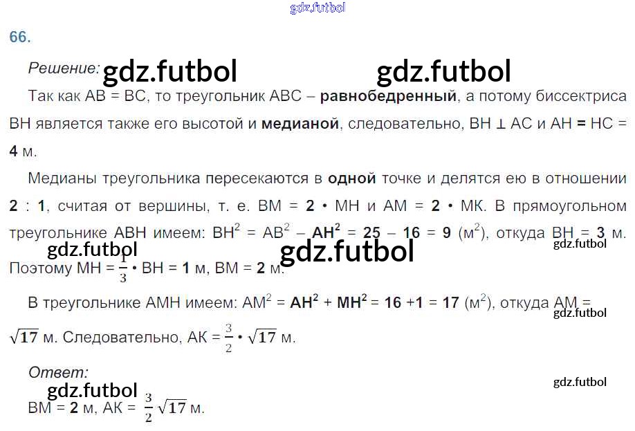 Готовые домашние задания по Геометрии за 8 класс Атанасян Рабочая тетрадь 2019 ФГОС - Задачи 66