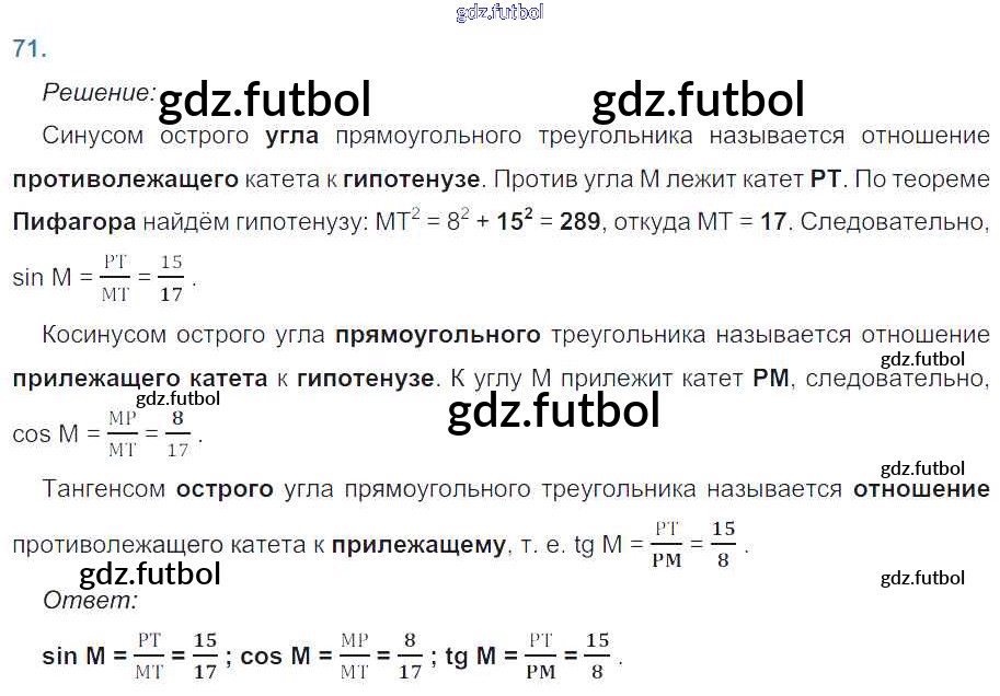 Готовые домашние задания по Геометрии за 8 класс Атанасян Рабочая тетрадь 2019 ФГОС - Задачи 71