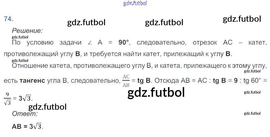 Готовые домашние задания по Геометрии за 8 класс Атанасян Рабочая тетрадь 2019 ФГОС - Задачи 74