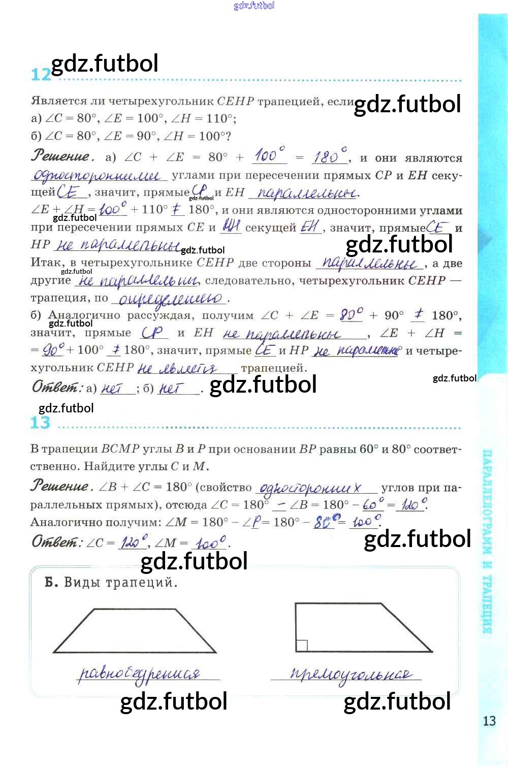 Готовые домашние задания по Геометрии за 8 класс Глазков Рабочая тетрадь УМК 2017 ФГОС - Глава V. Четырехугольники стр. 13