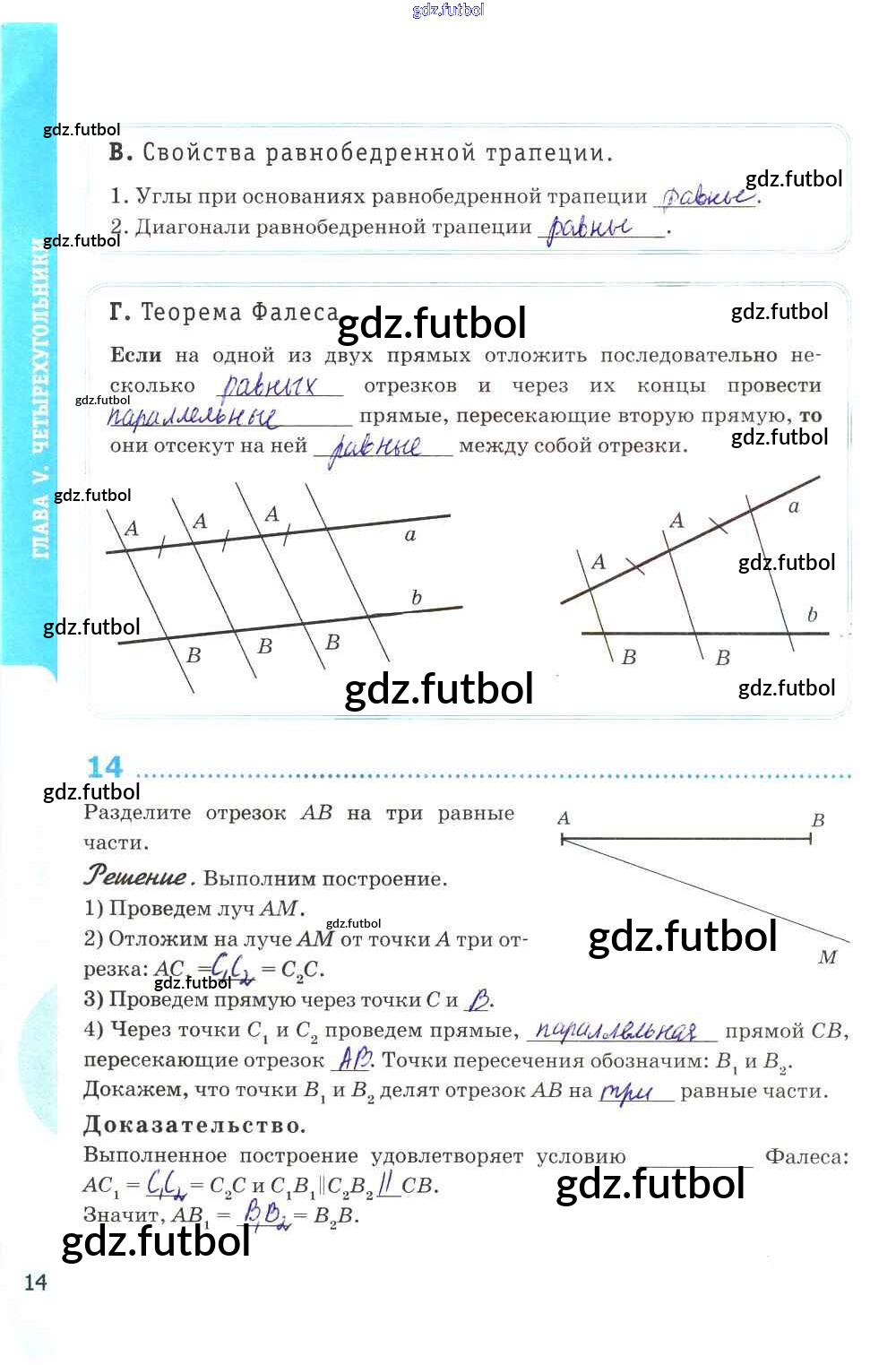 Готовые домашние задания по Геометрии за 8 класс Глазков Рабочая тетрадь УМК 2017 ФГОС - Глава V. Четырехугольники стр. 14