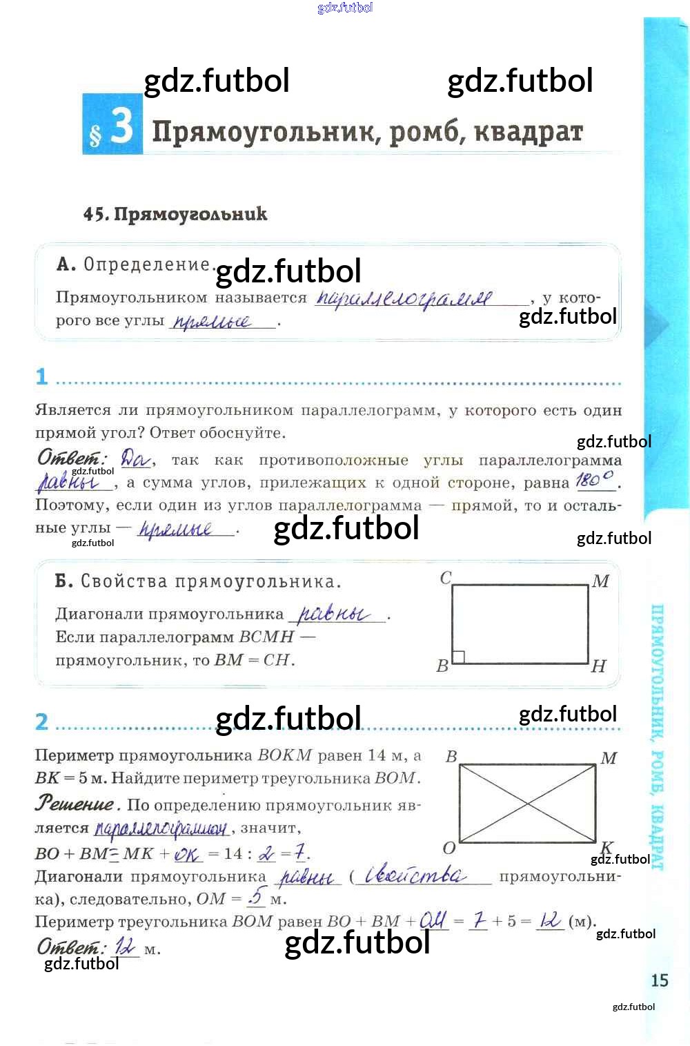 Готовые домашние задания по Геометрии за 8 класс Глазков Рабочая тетрадь УМК 2017 ФГОС - Глава V. Четырехугольники стр. 15