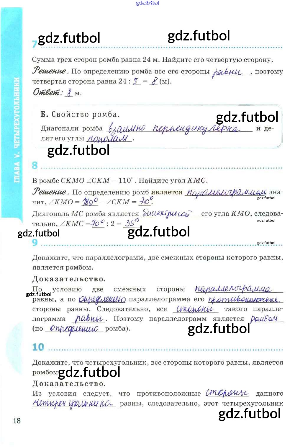 Готовые домашние задания по Геометрии за 8 класс Глазков Рабочая тетрадь УМК 2017 ФГОС - Глава V. Четырехугольники стр. 18