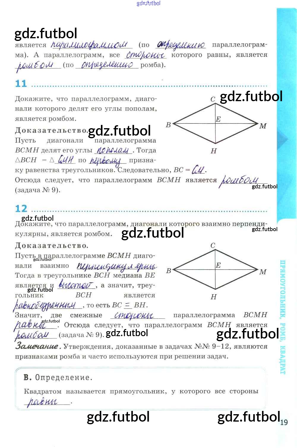 Готовые домашние задания по Геометрии за 8 класс Глазков Рабочая тетрадь УМК 2017 ФГОС - Глава V. Четырехугольники стр. 19