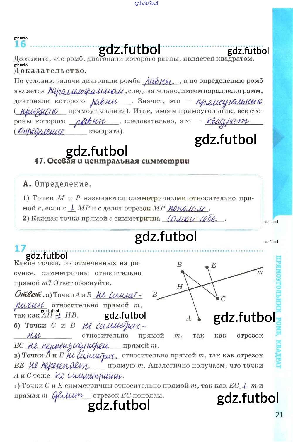 Готовые домашние задания по Геометрии за 8 класс Глазков Рабочая тетрадь УМК 2017 ФГОС - Глава V. Четырехугольники стр. 21