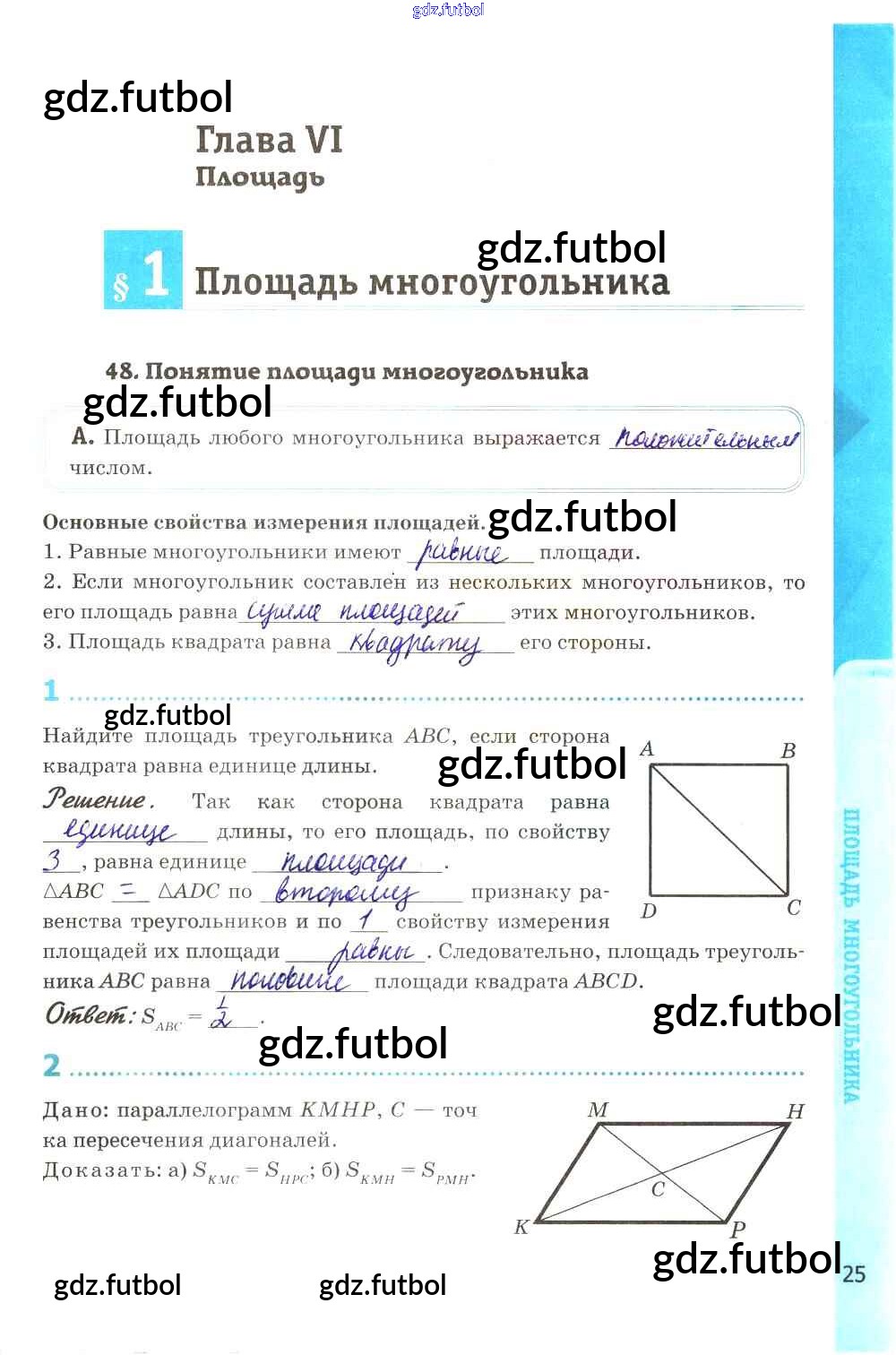 Готовые домашние задания по Геометрии за 8 класс Глазков Рабочая тетрадь УМК 2017 ФГОС - Глава VI. Площадь стр. 25