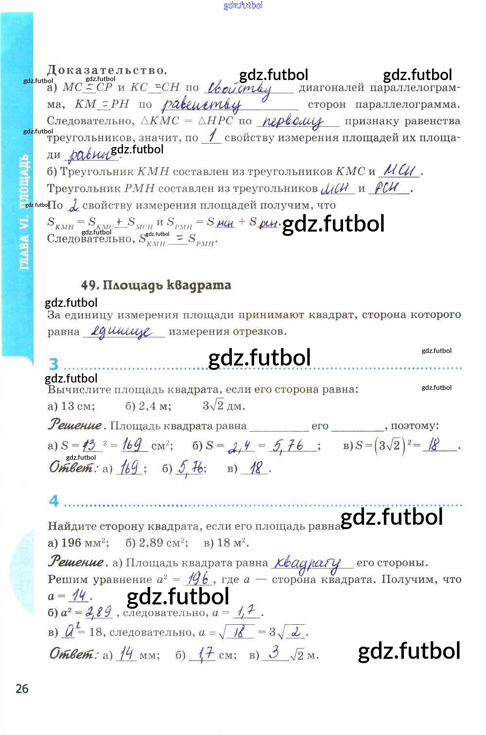 Готовые домашние задания по Геометрии за 8 класс Глазков Рабочая тетрадь УМК 2017 ФГОС - Глава VI. Площадь стр. 26