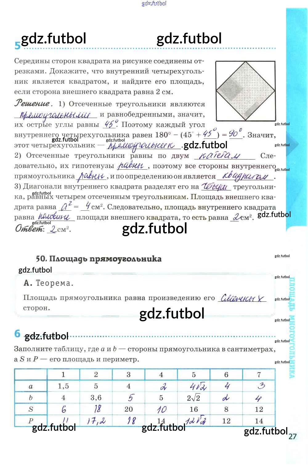 Готовые домашние задания по Геометрии за 8 класс Глазков Рабочая тетрадь УМК 2017 ФГОС - Глава VI. Площадь стр. 27