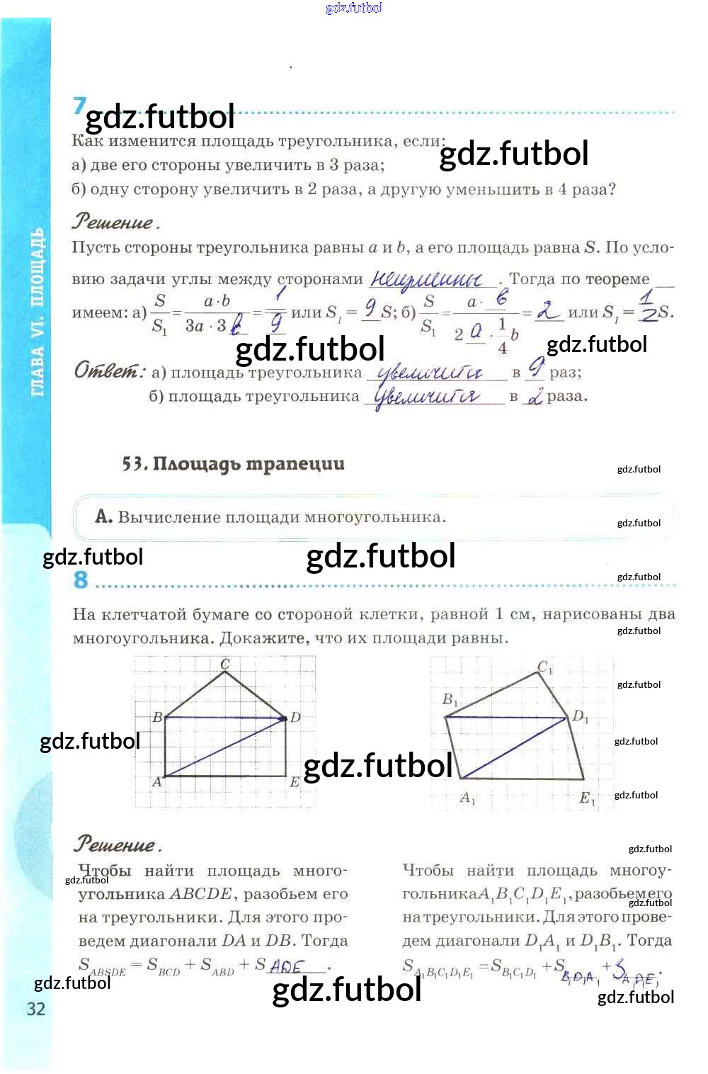 Готовые домашние задания по Геометрии за 8 класс Глазков Рабочая тетрадь УМК 2017 ФГОС - Глава VI. Площадь стр. 32