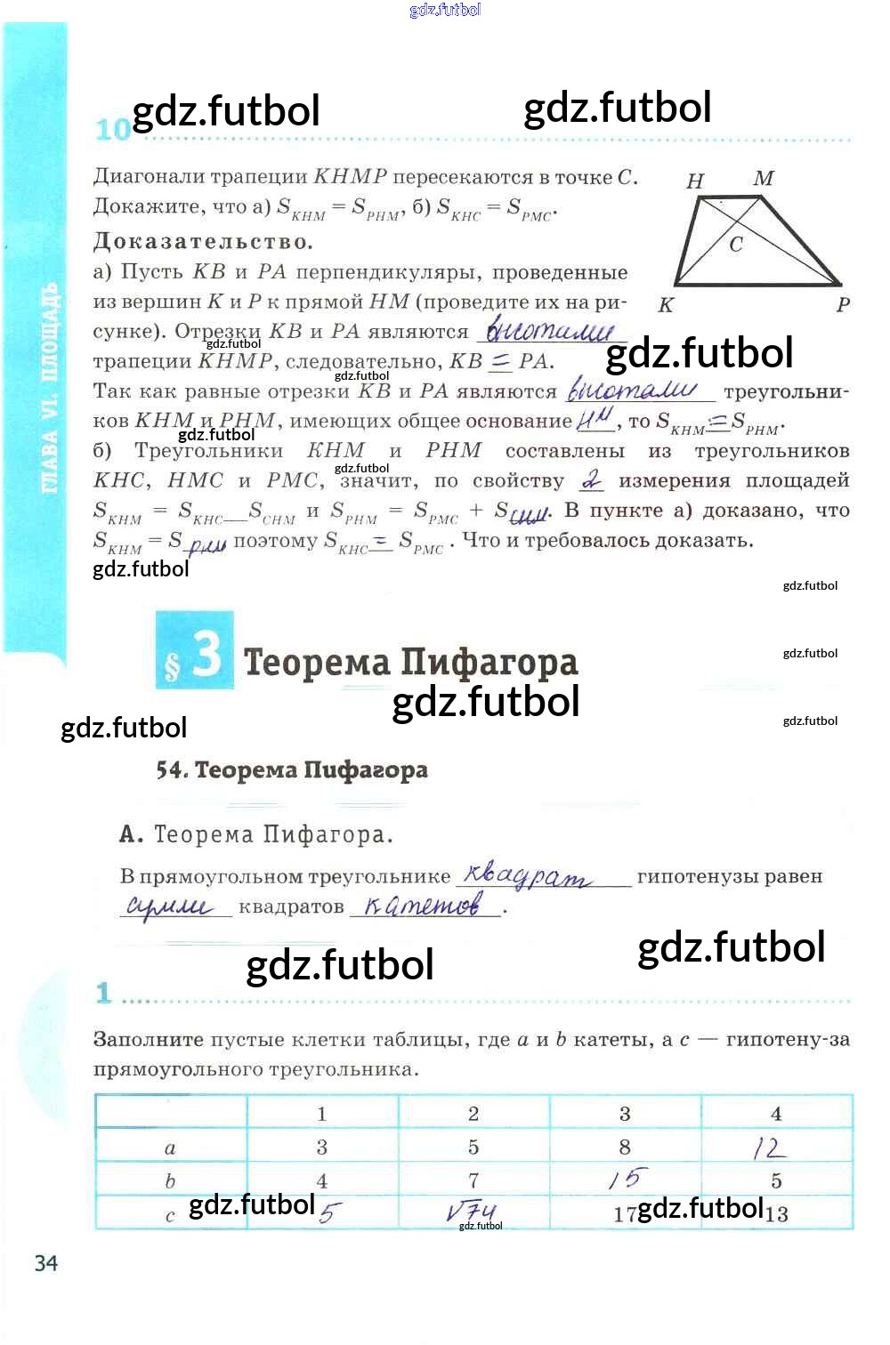 Готовые домашние задания по Геометрии за 8 класс Глазков Рабочая тетрадь УМК 2017 ФГОС - Глава VI. Площадь стр. 34