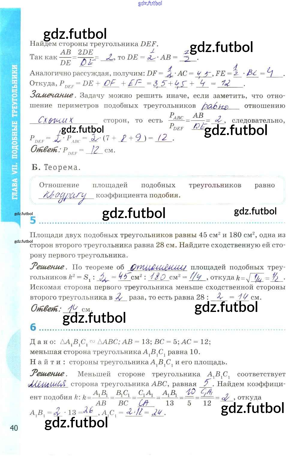 Готовые домашние задания по Геометрии за 8 класс Глазков Рабочая тетрадь УМК 2017 ФГОС - Глава VII. Подобные треугольники стр. 40