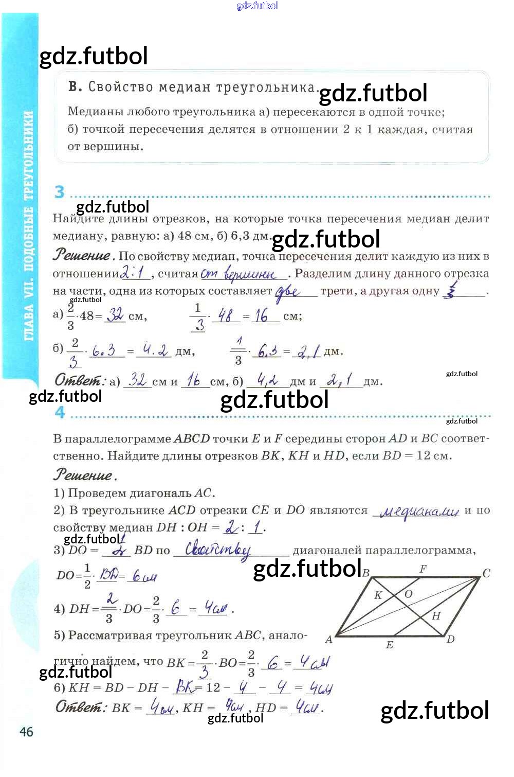 Готовые домашние задания по Геометрии за 8 класс Глазков Рабочая тетрадь УМК 2017 ФГОС - Глава VII. Подобные треугольники стр. 46