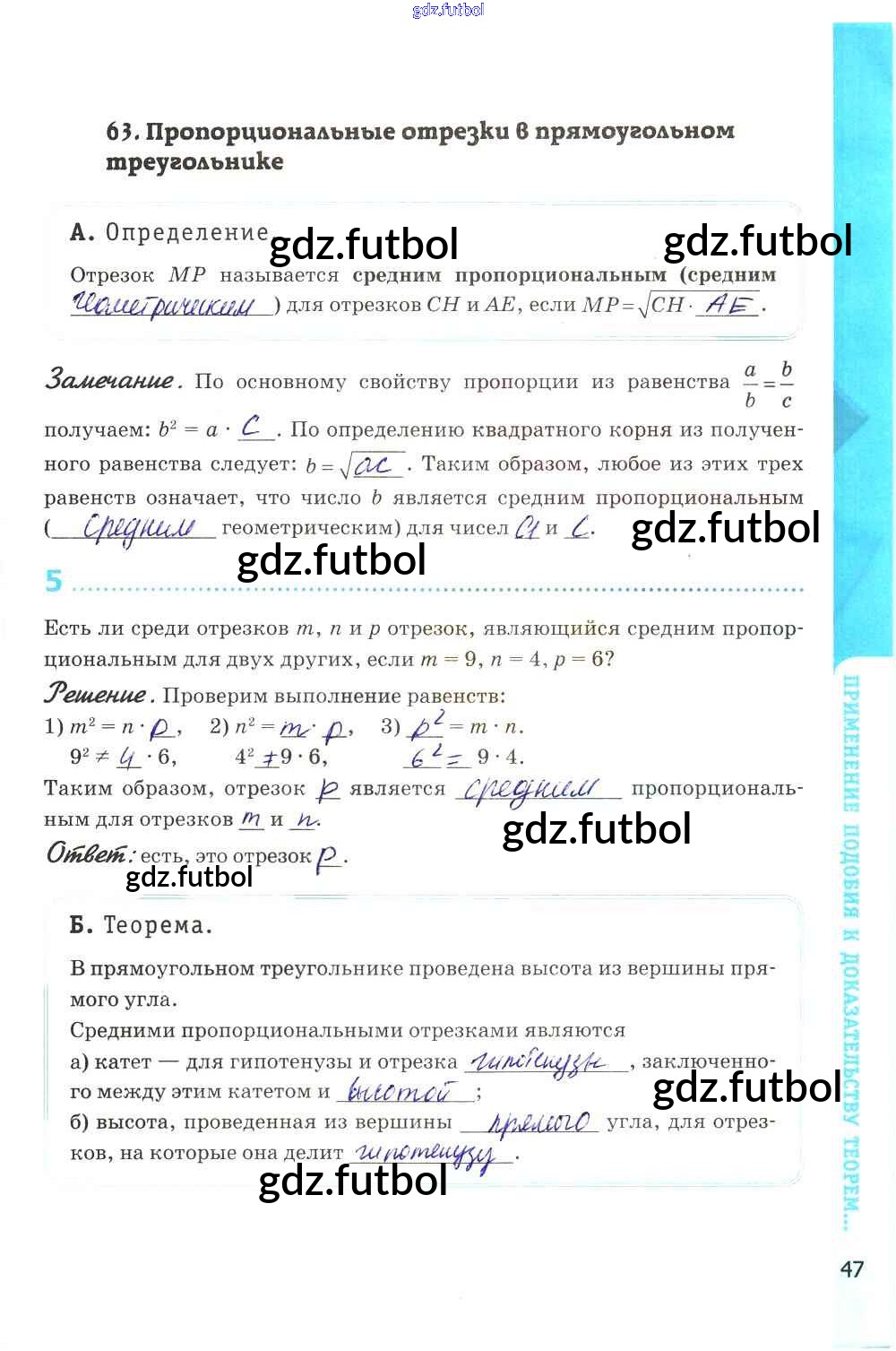 Готовые домашние задания по Геометрии за 8 класс Глазков Рабочая тетрадь УМК 2017 ФГОС - Глава VII. Подобные треугольники стр. 47