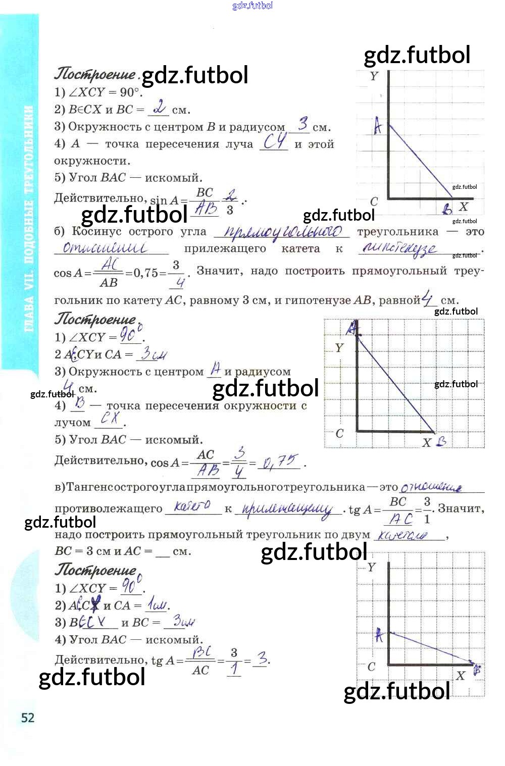 Готовые домашние задания по Геометрии за 8 класс Глазков Рабочая тетрадь УМК 2017 ФГОС - Глава VII. Подобные треугольники стр. 52