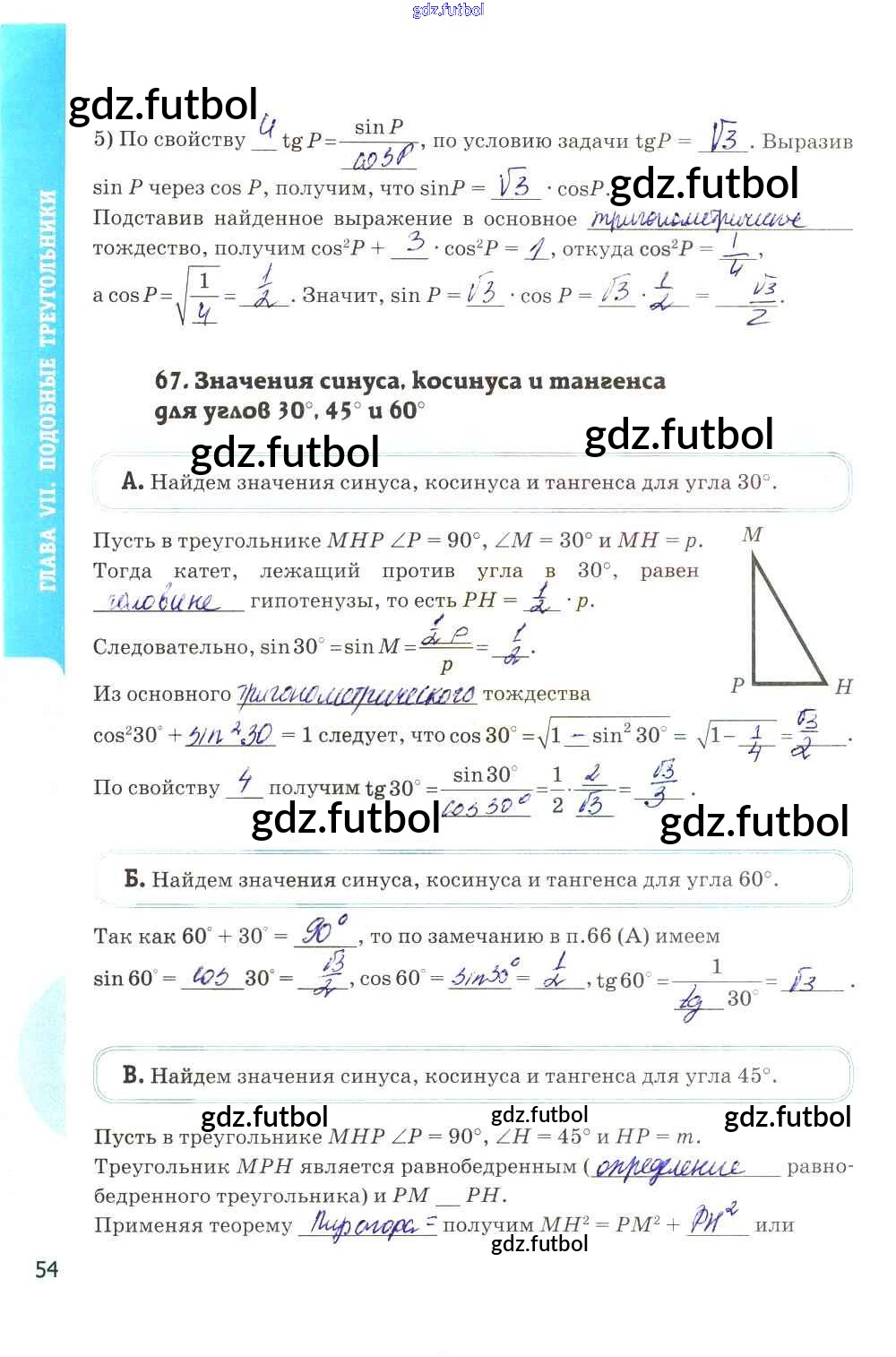 Готовые домашние задания по Геометрии за 8 класс Глазков Рабочая тетрадь УМК 2017 ФГОС - Глава VII. Подобные треугольники стр. 54