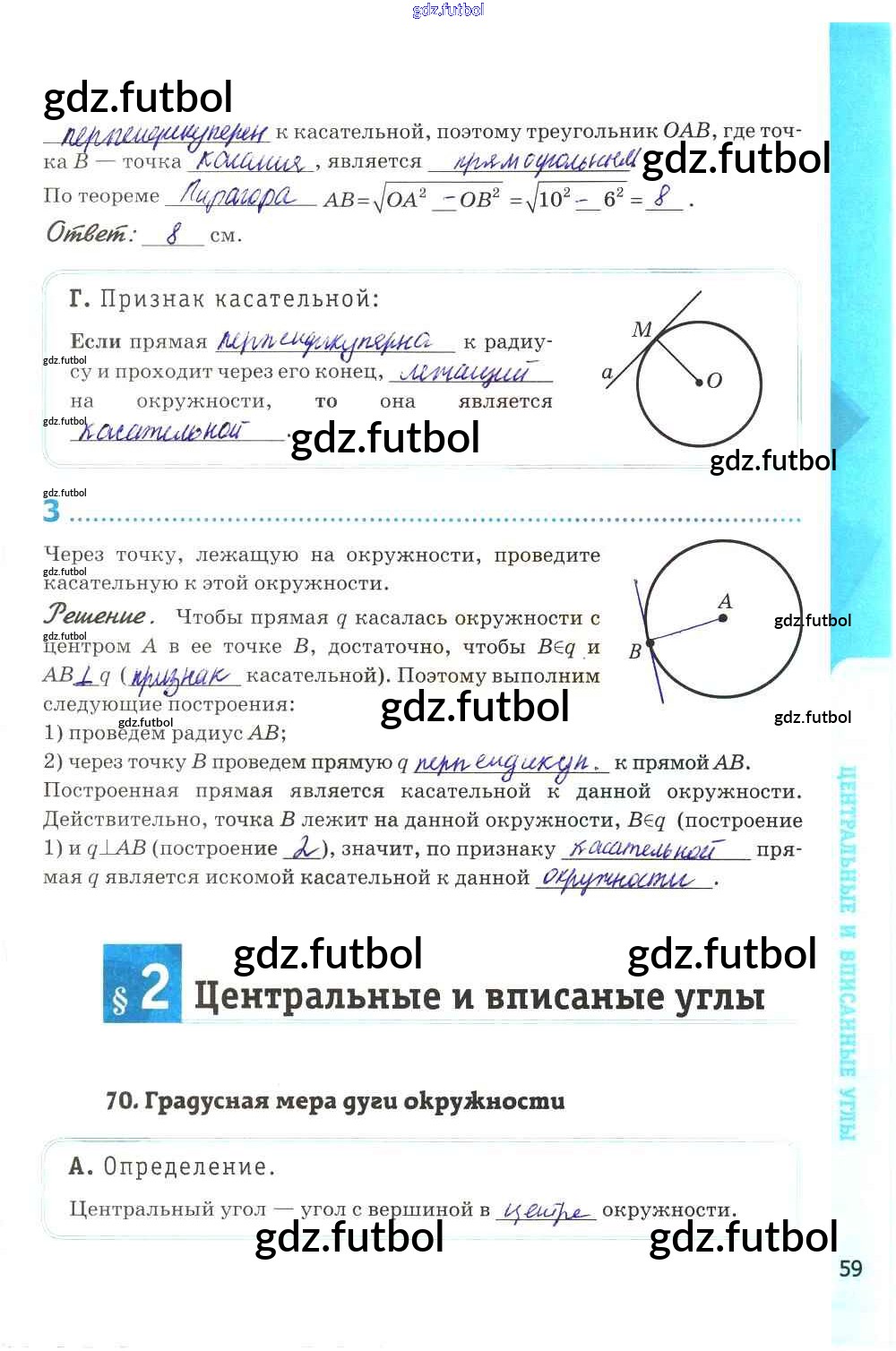Готовые домашние задания по Геометрии за 8 класс Глазков Рабочая тетрадь УМК 2017 ФГОС - Глава VIII. Окружность стр. 59