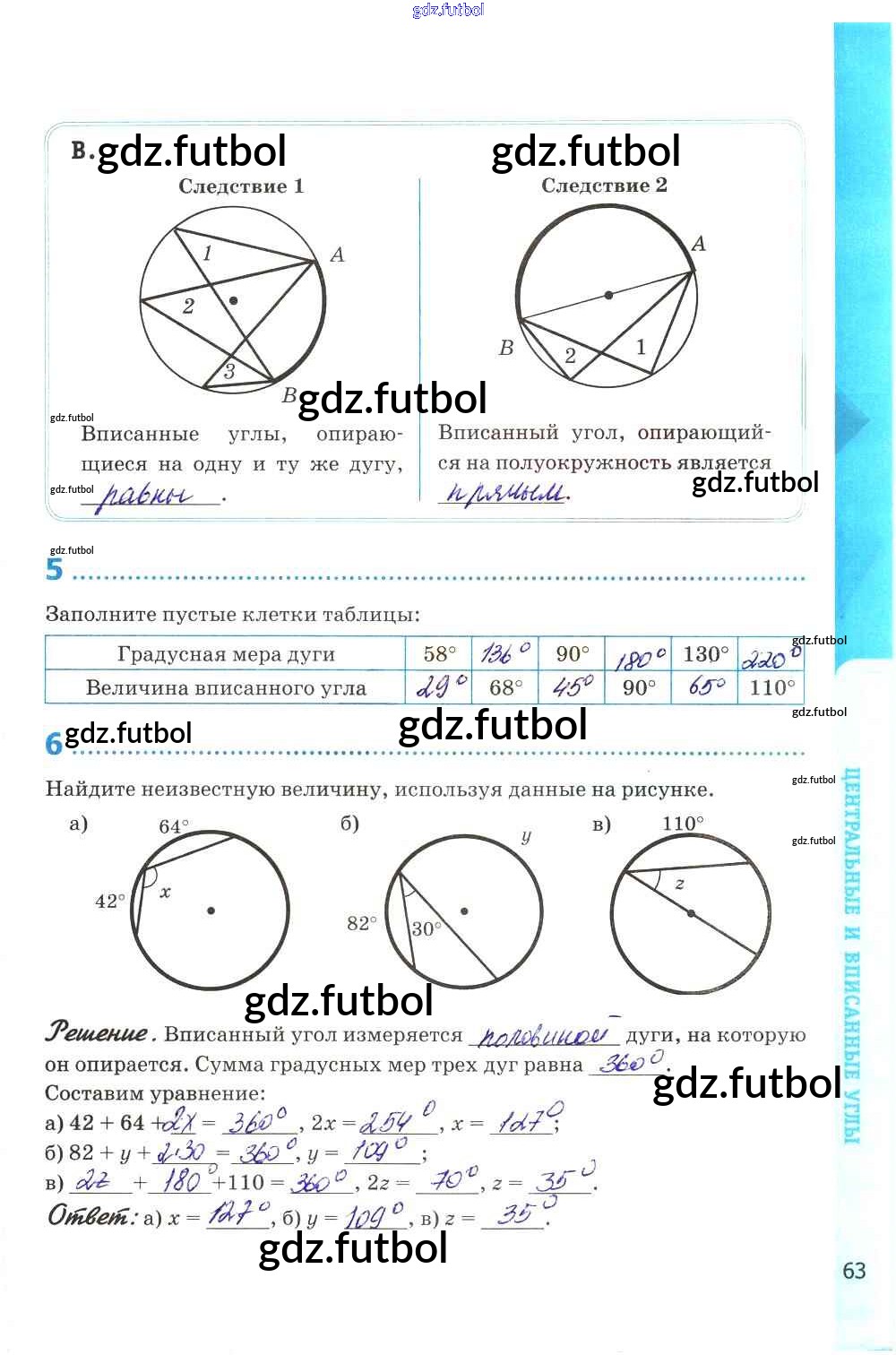 Готовые домашние задания по Геометрии за 8 класс Глазков Рабочая тетрадь УМК 2017 ФГОС - Глава VIII. Окружность стр. 63