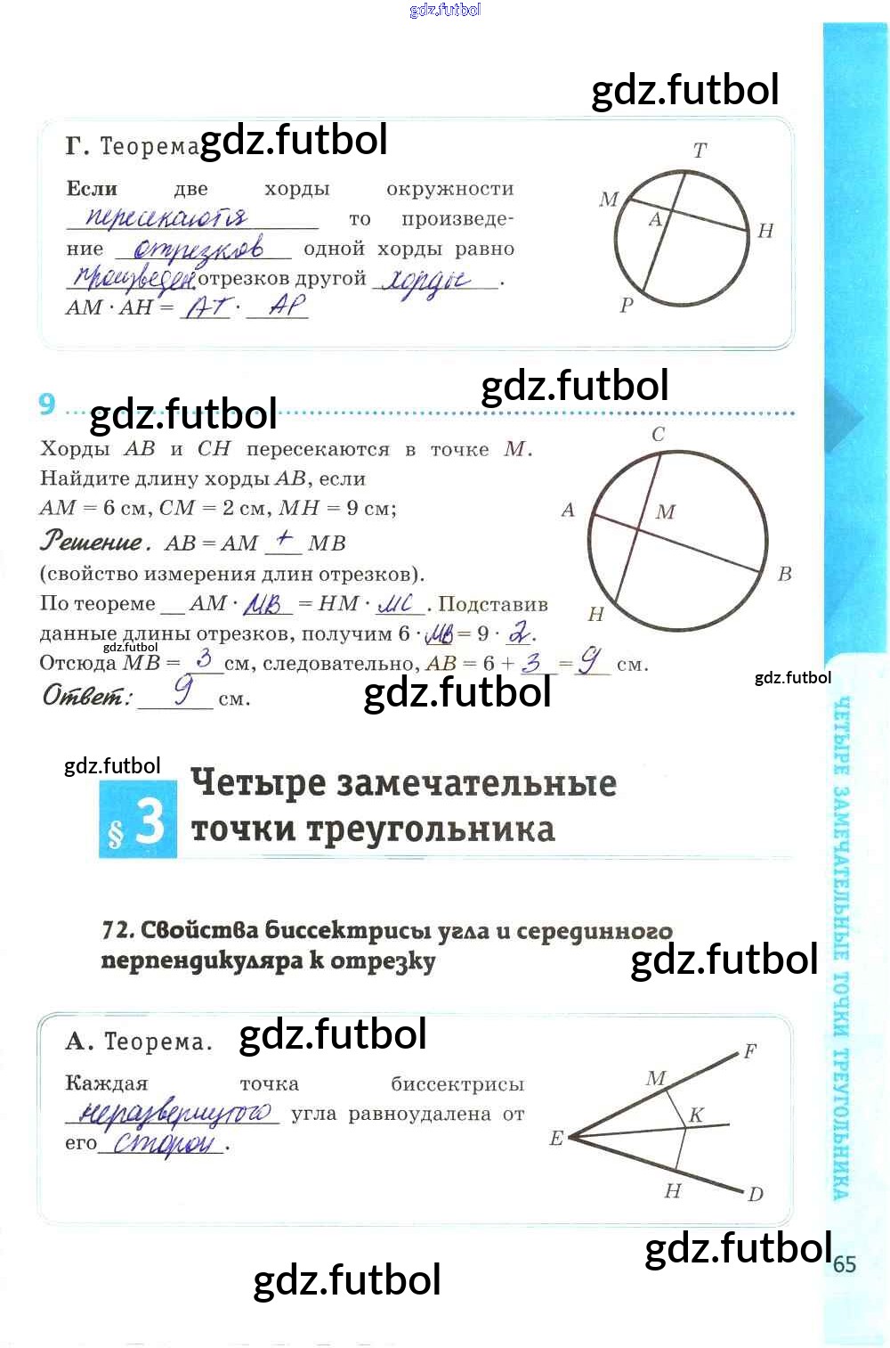 Готовые домашние задания по Геометрии за 8 класс Глазков Рабочая тетрадь УМК 2017 ФГОС - Глава VIII. Окружность стр. 65